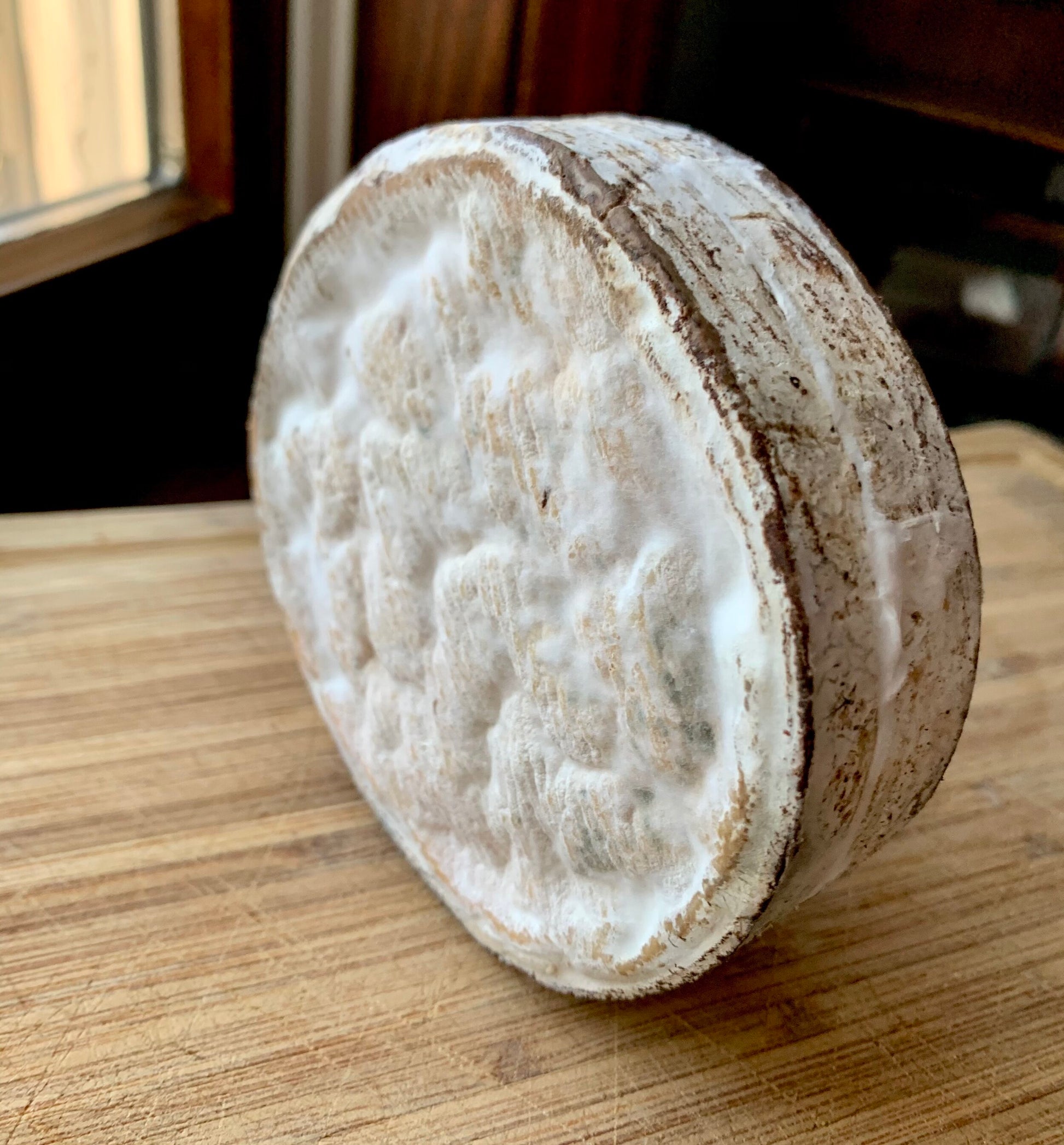 These little wheels are bound in spruce bark and made w/ raw milk, from the winter's dry hay.